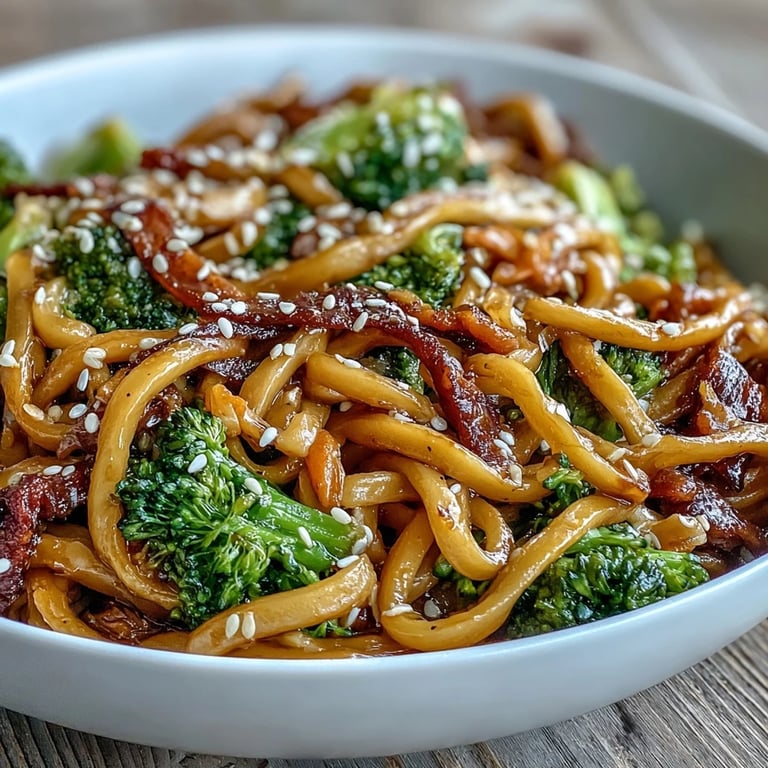 Save My neighbor knocked on my door one Thursday night holding an armful of vegetables from her garden and asked if I knew what to do with them. I had a box of noodles, a bottle of soy sauce, and about twenty minutes before I needed to leave for book club. What came together in that rushed half hour turned into one of those recipes I now make whenever I need something fast, bright, and deeply satisfying. The sweetness of the sauce against the snap of barely cooked vegetables felt like a small victory in the middle of a busy week.