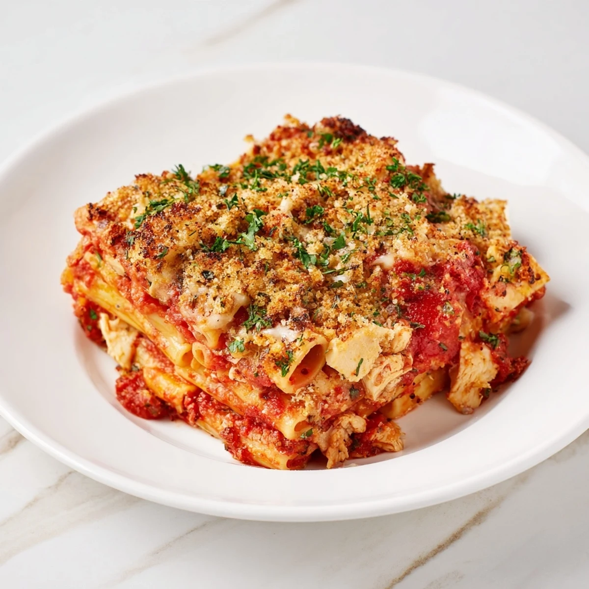 I first made this Baked Chicken Parmesan Pasta when my family craved something hearty and comforting. It instantly became a favorite—everyone always asks for seconds and loves the crunchy breadcrumb topping.
