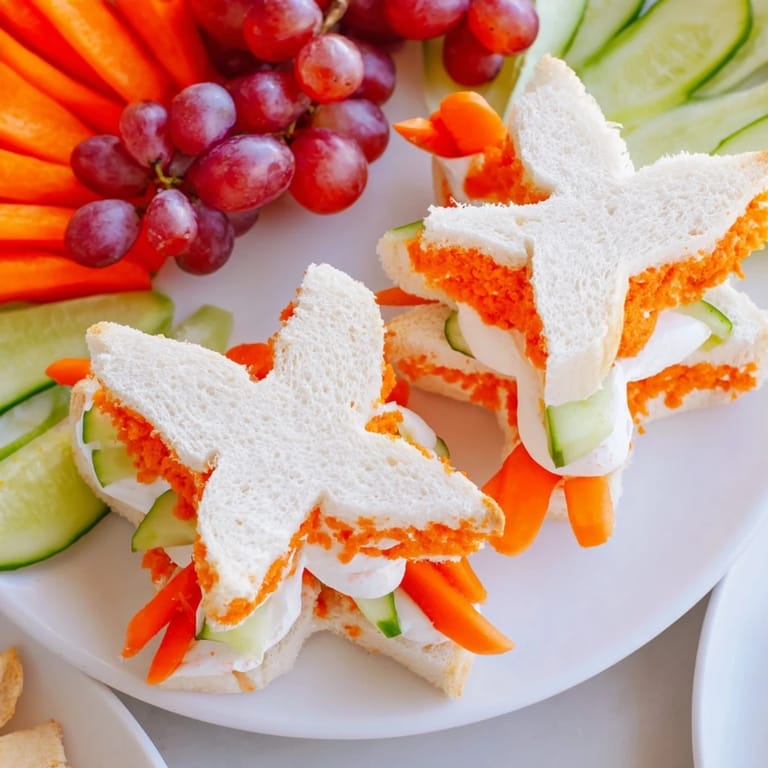 - Starfish Sandwiches: 12 slices soft sandwich bread, 6 tbsp cream cheese (or hummus), 6 tbsp jam nut butter or deli meat (choose preferred fillings), 1 small cucumber thinly sliced, 1 small carrot peeled and grated, 1 starfish-shaped cookie cutter (approx 3-4 inches wide)