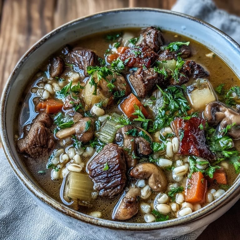 Save My neighbor stopped by on a freezing January afternoon with a bowl of beef and barley soup, and I remember thinking how something so simple could taste like pure comfort. The steam rising from the bowl fogged up my glasses, and I sat at the kitchen counter with my hands wrapped around the mug, watching the pearl barley catch the light. That first spoonful—tender beef, soft vegetables, that nutty grain—stayed with me long after she left. I've been making it ever since, usually on days when the kitchen feels too quiet or when someone I care about needs feeding.
