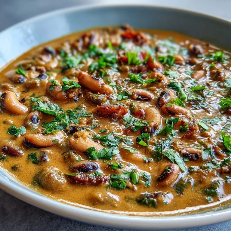 Save My neighbor Marcus stopped by one evening with a bag of fresh ginger and a story about a curry he'd had at a small restaurant tucked between two shops downtown. He described how the black-eyed peas melted into this creamy, warming sauce, and suddenly I was determined to recreate it in my own kitchen. What started as a casual experiment became something I make whenever the weather turns cool or when I need to feed someone I care about. There's something about the way those humble legumes transform under the right spices that feels almost like magic.