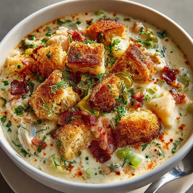 Save Pickle-Fix Buffalo Clam Chowder with Dill Croutons is the answer when you crave comfort food with attitude. Creamy chowder meets spicy Buffalo heat and tangy pickles for a lively twist, while crisp dill croutons add irresistible crunch. This has become a favorite whenever I want to wake up our dinner routine and get big flavor with classic ingredients.