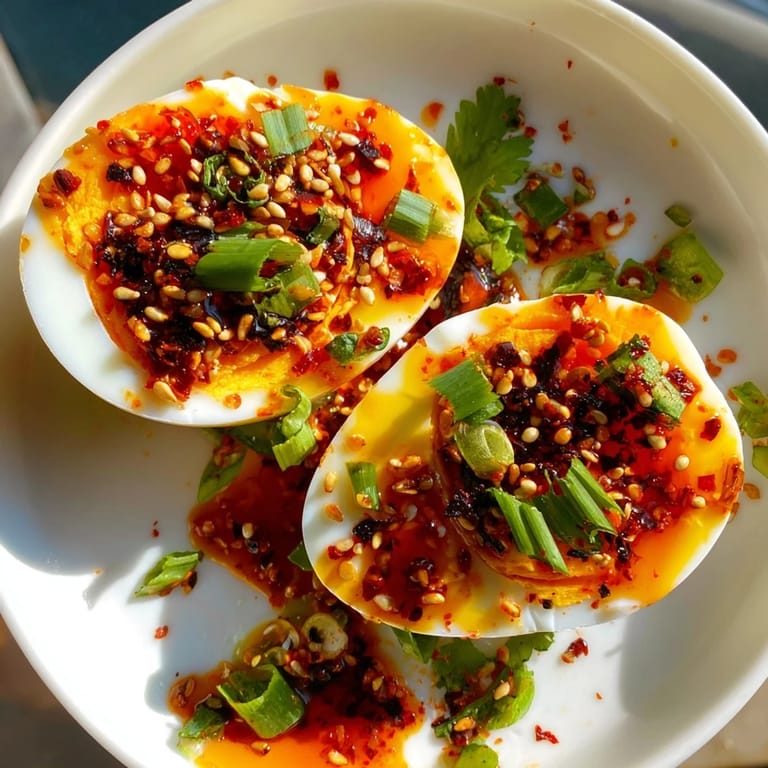 Save I discovered chili oil eggs completely by accident during a lazy Sunday morning when my fridge was practically empty. All I had were eggs, a jar of chili crisp I'd been hoarding, and just enough curiosity to see what would happen if I combined them. The moment I cracked into that first soft yolk and let it mingle with the spicy oil, I understood why this dish had taken over the internet. There's something about the contrast—the cool, buttery yolk meeting that warm, fragrant heat—that makes you want to keep eating long after you're full.