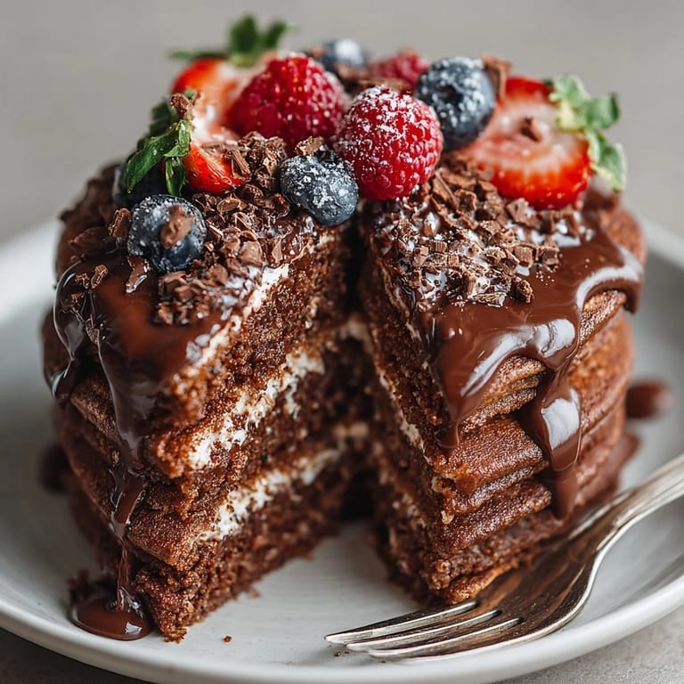 - Arrange the warm pancakes on a plate and top with a generous swirl of chocolate hazelnut spread. Add fresh berries if you like a tart burst or a dusting of more toasted hazelnuts for crunch. Serve immediately while still warm.