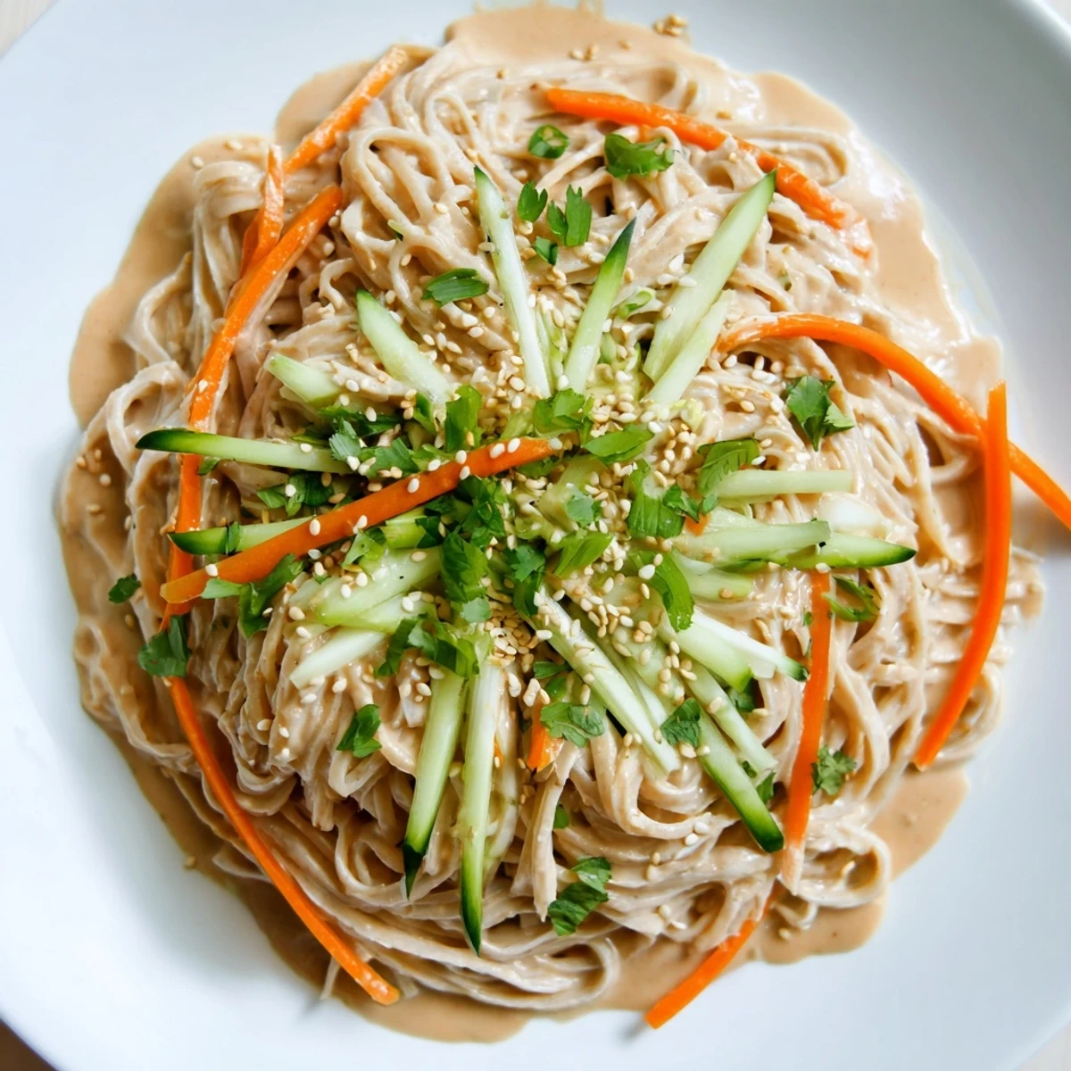 Once you understand the basic formula—creamy nutty sauce plus cool noodles plus crisp vegetables—you can bend it in different directions. Add shredded cooked chicken or crispy tofu for protein, throw in fresh corn kernels or thinly sliced bell peppers for different textures, or swirl in a touch of white miso for extra umami depth. The sauce is flexible enough to handle additions without losing its character, so treat this as a base rather than a strict blueprint.