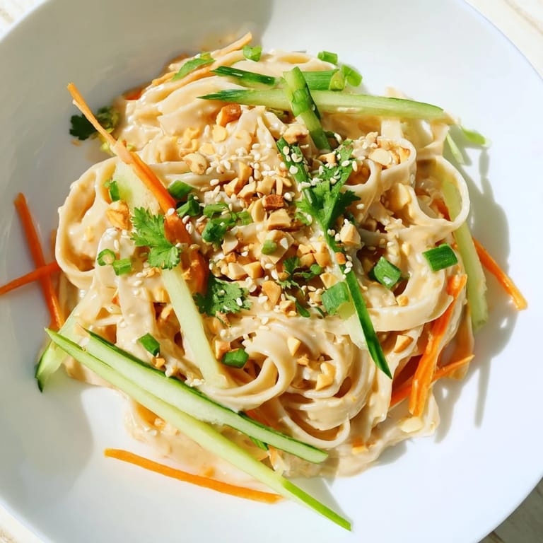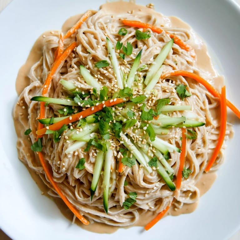 Save There's a moment in summer when your kitchen feels too warm to turn on the stove, and you're standing in front of the fridge wondering what could possibly satisfy both hunger and the heat. That's when cold sesame noodles saved me—a colleague brought a container to a picnic, and I watched people go back for thirds without hesitation. The sauce was the revelation: creamy but light, nutty and tangy all at once, clinging to every strand of noodle. I've made them dozens of times since, always with that same small shock of how something this simple tastes this good.