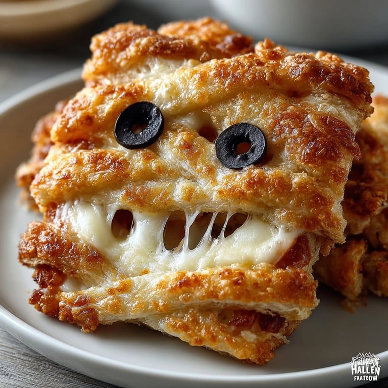 Save This Halloween Grilled Cheese Mummy Wraps recipe transforms ordinary grilled cheese into a festive treat that will delight both kids and adults alike. The combination of crispy golden puff pastry and gooey melted cheese creates a delicious handheld snack, while the olive eyes add that perfect spooky touch for Halloween celebrations.