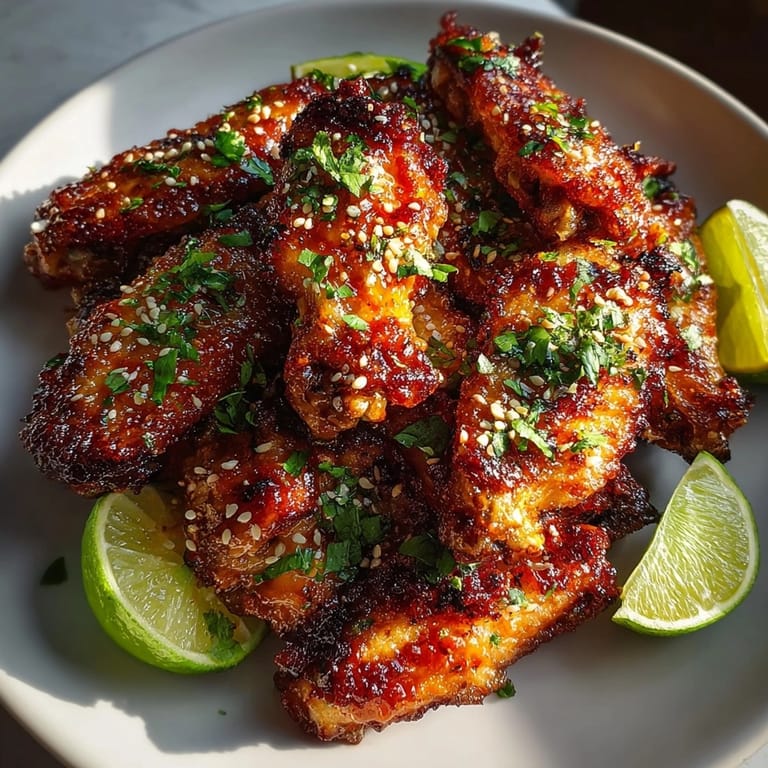 - Arrange your glossy glazed wings on a serving platter. For an extra touch of flavor and visual appeal sprinkle with freshly chopped cilantro and toasted sesame seeds. Add lime wedges on the side for guests to squeeze over their wings the acidity brightens the flavors and cuts through the richness.
