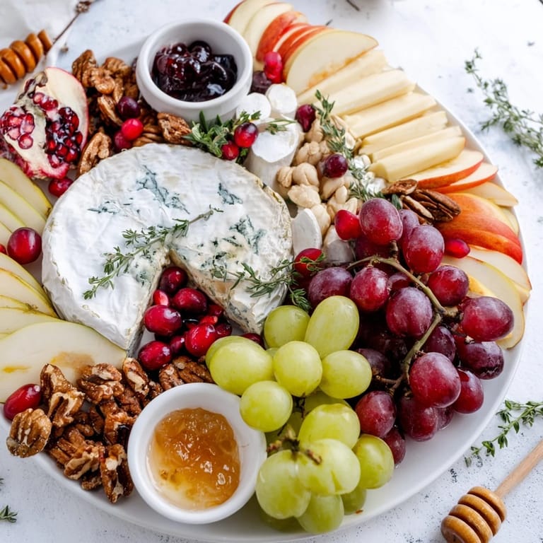 Save This cheese board not only elevates your appetizer table but also encourages guests to mingle and graze at their leisure. The combination of classic holiday flavors like fig jam and honey, alongside fresh rosemary and thyme sprigs, adds a seasonal aroma that enhances the overall experience.