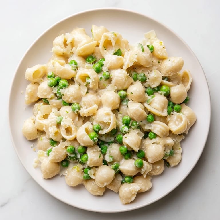 Save A comforting, budget-friendly pasta dish that combines tender macaroni with sweet green peas in a light, flavorful sauce. Perfect for a quick weeknight meal.
