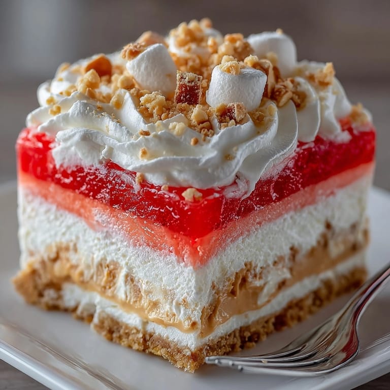 Save This playful Peanut Butter Jello Salad brings together creamy peanut butter, luscious whipped layers, bright fruity gelatin, and a touch of crunchy fun. It is a nostalgic twist that blends American retro charm with modern ease, perfect for summer picnics or family gatherings. Every time I make this with my kids, I enjoy how the layers come together and watching the delight as everyone gets their first bite.