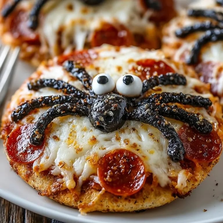 - Place pepperoni slices if using, then carefully arrange one olive half as the spider body on each pizza. Position eight olive slivers around each body to create legs. For extra creepy effect, bend some legs slightly for a more realistic crawling appearance.