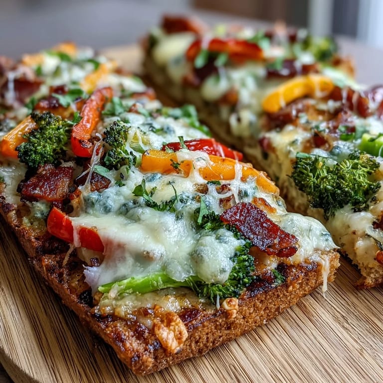 This Rainbow Veggie Flatbread Pizza is more than just a pretty face—it's a practical way to use up those colorful vegetables in your crisper drawer while creating something truly special. The naan or flatbread base provides the perfect canvas for layering pizza sauce, melted mozzarella, and those gorgeous vegetable stripes. Each bite delivers a satisfying mix of textures and flavors, from the tangy feta and sweet cherry tomatoes to the crisp bell peppers and tender broccoli. It's comfort food that happens to be packed with nutrition, making it a win for both kids and adults alike.