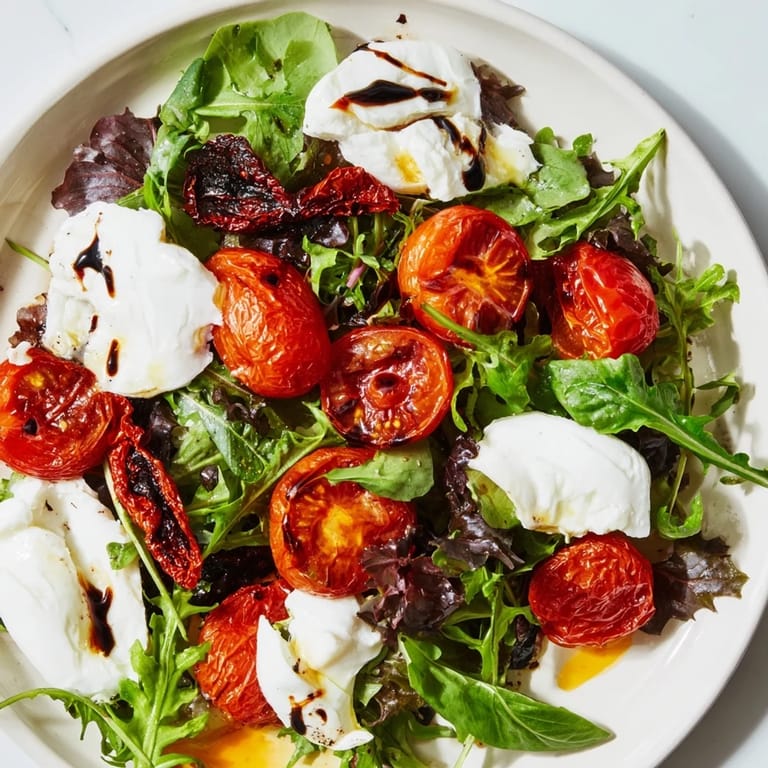 Save I discovered this salad on a late summer afternoon when my garden had suddenly exploded with tomatoes all at once—more than I knew what to do with. Rather than panic, I decided to celebrate them in three different ways: fresh, warm from the oven, and the intensity of sun-dried. The moment I added creamy burrata and torn basil, something clicked. It felt less like throwing ingredients together and more like painting with flavors.