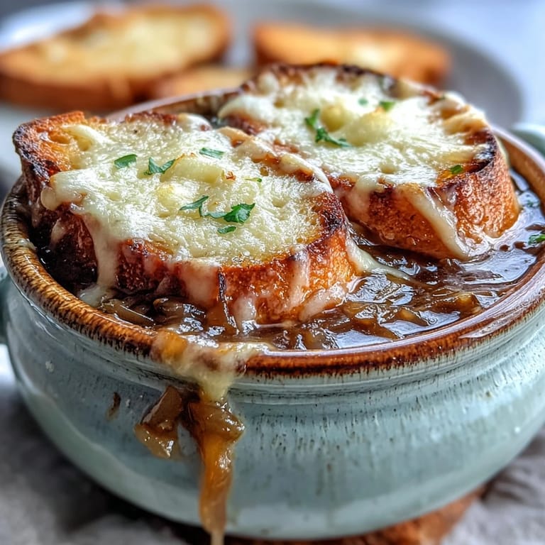 The toasted baguette and melted Gruyère aren't just toppings; they're the final act in a three-course play. The bread absorbs the soup while staying textured, and the cheese adds richness and a slight nuttiness that pulls everything together. This last step under the broiler is when the dish transforms into something restaurant-quality right in front of you.