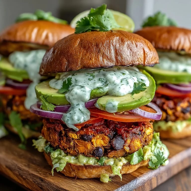 Save Discover a plant-based favorite with these Vegan Sweet Potato Black Bean Burgers. These hearty, flavorful patties combine the natural sweetness of roasted sweet potatoes with the protein-packed richness of black beans. Topped with a creamy, zesty avocado lime sauce, this recipe offers a satisfying and nutritious meal that is perfect for any day of the week.