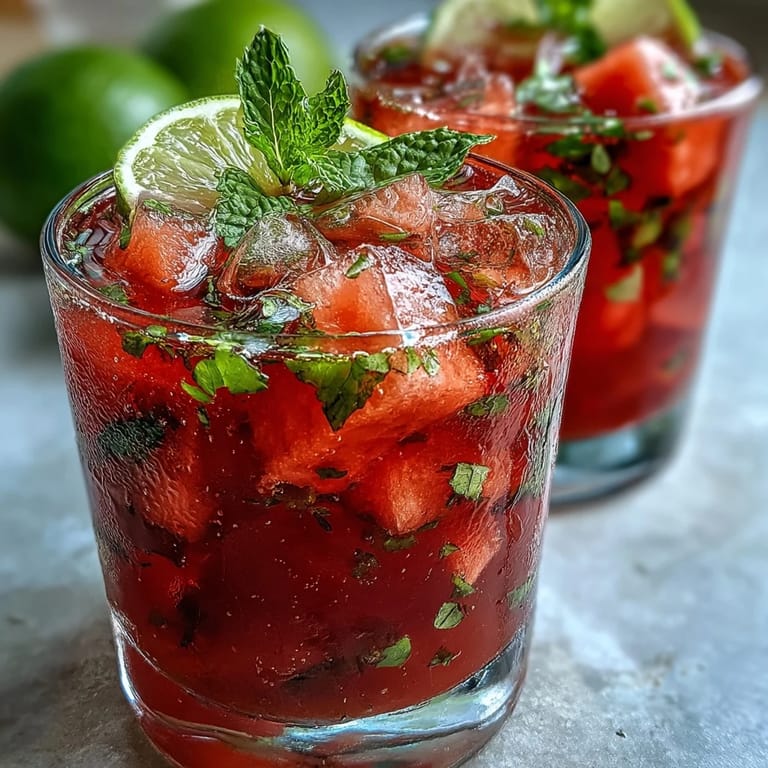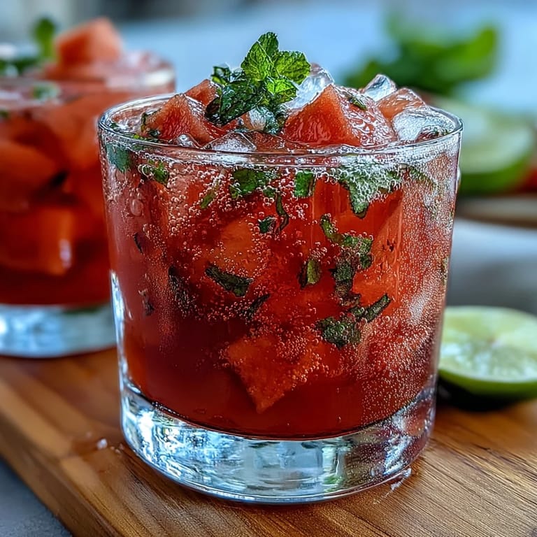 Present this mocktail in tall, clear glasses to showcase its beautiful pink color. The garnishes aren't just decorative—they add aromatic appeal and additional flavor with each sip. Consider serving it alongside light summer fare like grilled fish tacos, fresh salads, or Mediterranean mezze platters. It's an excellent choice for brunch buffets, where it pairs wonderfully with both sweet and savory dishes. For parties, prepare the watermelon base ahead of time and store it in the refrigerator, then add the sparkling water just before serving to maintain the fizz. Set up a DIY mocktail bar where guests can garnish their own drinks with various fruit slices, herb sprigs, and flavored sparkling waters for a personalized touch.