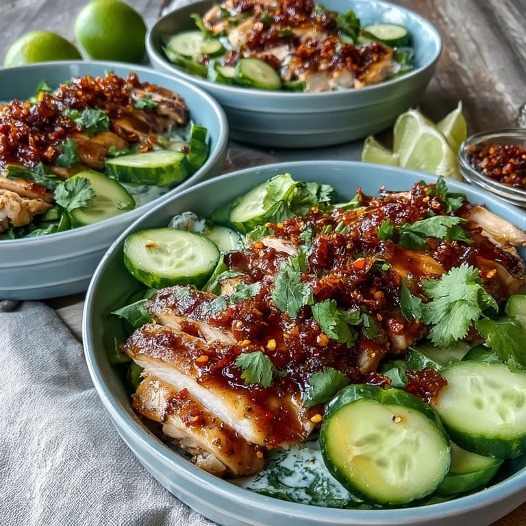 Save I scrolled past this bowl on my feed at midnight and couldn't stop thinking about it, so naturally I made it the next day with whatever chicken I had thawing on the counter. The chili crisp hit different over cool, creamy cucumber, and I realized I'd been overcomplicating lunch this whole time. My roommate walked in mid-bite and asked what smelled so good, then immediately started stealing bites from my bowl. That's when I knew this one was a keeper.