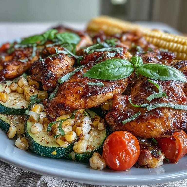 Save The first time I made this sheet pan chicken with zucchini and corn, it was a Tuesday in late July, the kind of evening when sunlight spills into the kitchen and the air hums with summer. I remember the sound of the knife slicing through crisp zucchini, and the kernels popping free from the corn cob—little bursts of color landing on the cutting board. The vegetables smelled earthy and sweet, and it felt like I was painting a canvas with fresh harvest. Somehow, the whole process made me forget the stress of the day. There is something comforting about tossing everything onto one pan and knowing dinner will be beautiful and easy.